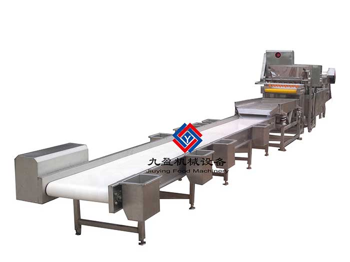 皮帶輸送挑選機(jī)--本機(jī)采取白色衛(wèi)生級皮帶輸送,皮帶厚3mm,除電機(jī)、皮帶外,均采用304不銹鋼。兩側(cè)帶有廢料斗,由人工將雜物挑出,扔入廢料斗,真品由本機(jī)輸送至下一道工序??筛鶕?jù)原料的清潔度不同及挑選速度的快慢,調(diào)節(jié)輸送速度。同時可根據(jù)要求設(shè)計雙層輸送裝置,上部輸送真品,下層輸送次品。