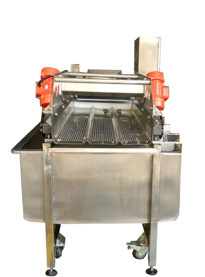 新型渦流振動清洗機利用清洗凈水形成渦流,使物料處于渦流的凈水中清洗。物料被清洗時,是和清洗水槽中的凈水一起作螺旋運動,物料清洗后受水動力作用被推進振動輸送機構(gòu),而送出清洗機。